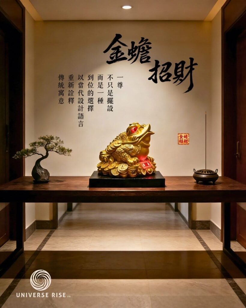 傳統金蟾往往因為造型過於俗氣而難以融入現代裝潢,「一尊到位」則完美解決了這個痛點。